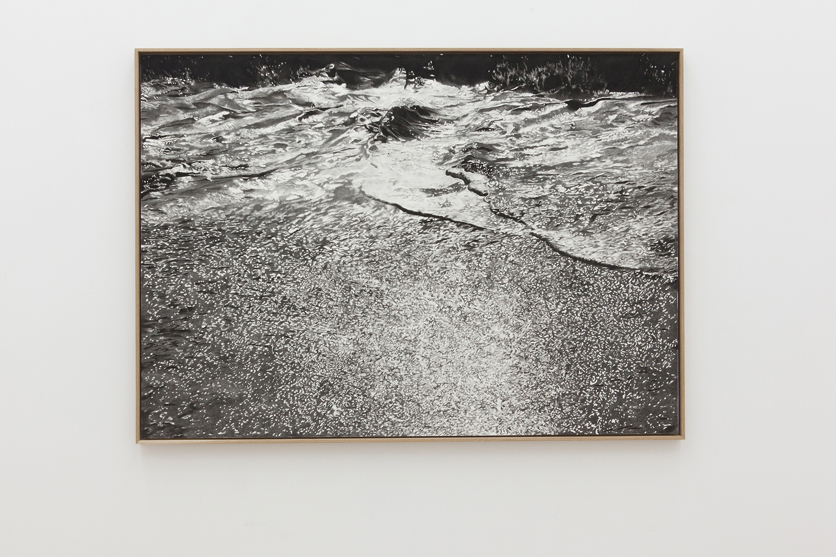 charcoal on paper mounted on aluminium, oak frame